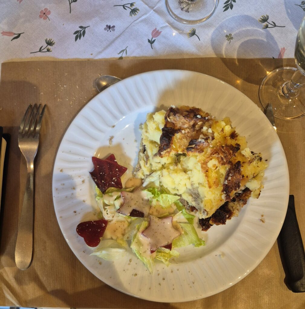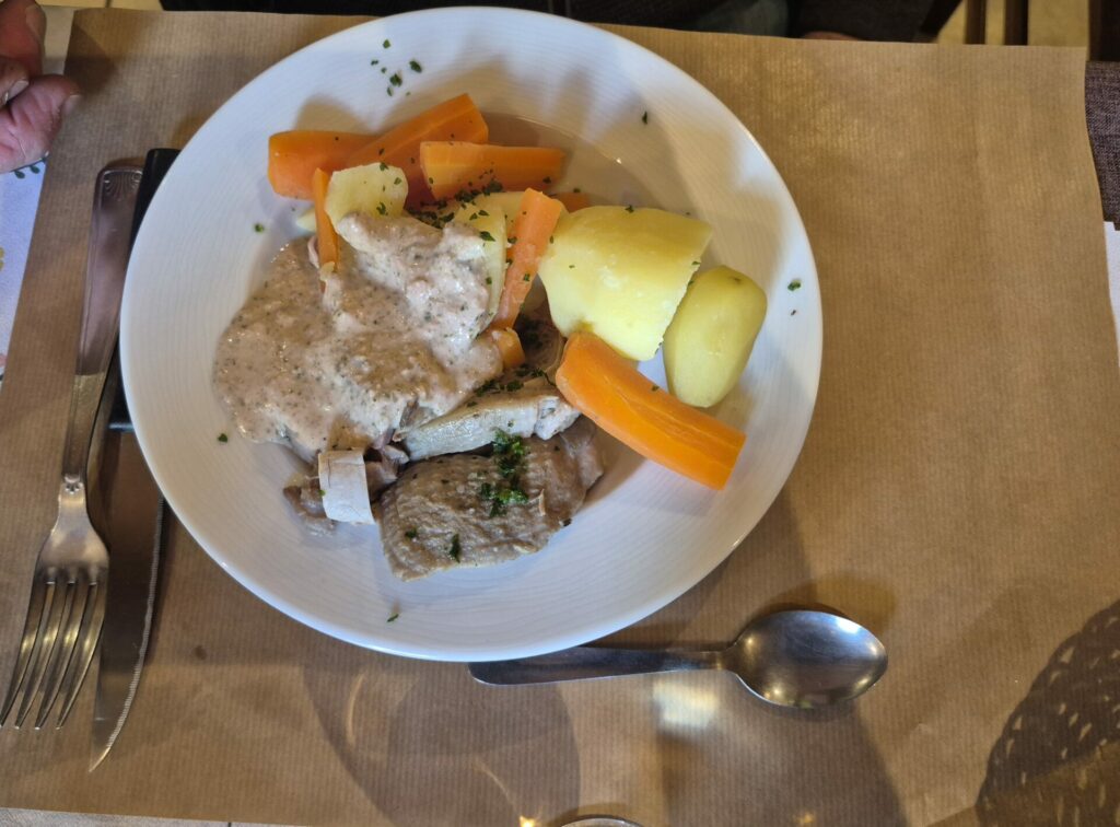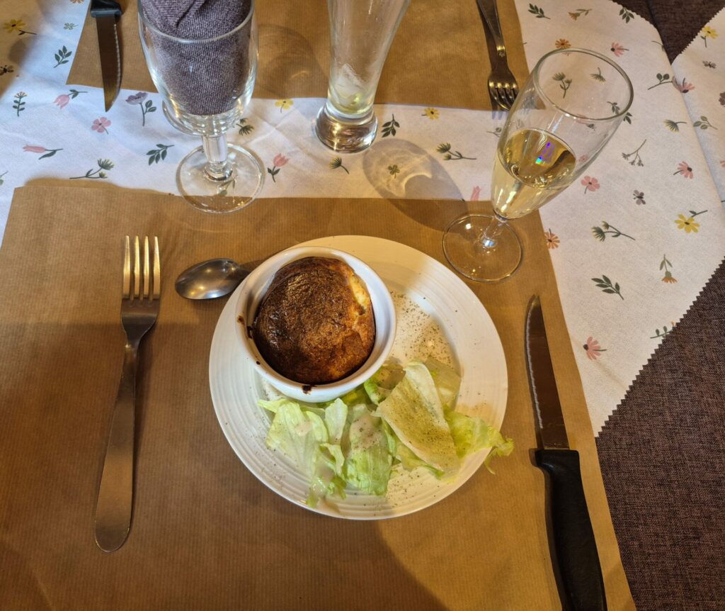 Soufflé, parmentier de canard, ou tête de veau, suivi d’un dessert, de quoi rassasier les gourmands que nous sommes.